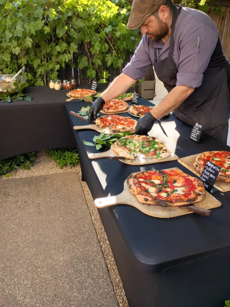 Minimum 48–72 hours (our dough is slow-fermented). For 30+ guests, aim for 5–7 days notice. Peak days book fast.